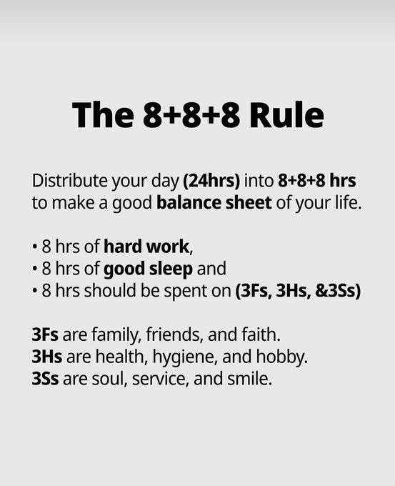 Enter the 8+8+8 Ruleāa timeless principle that might just be the ultimate cheat sheet to a balanced life. š§ š”